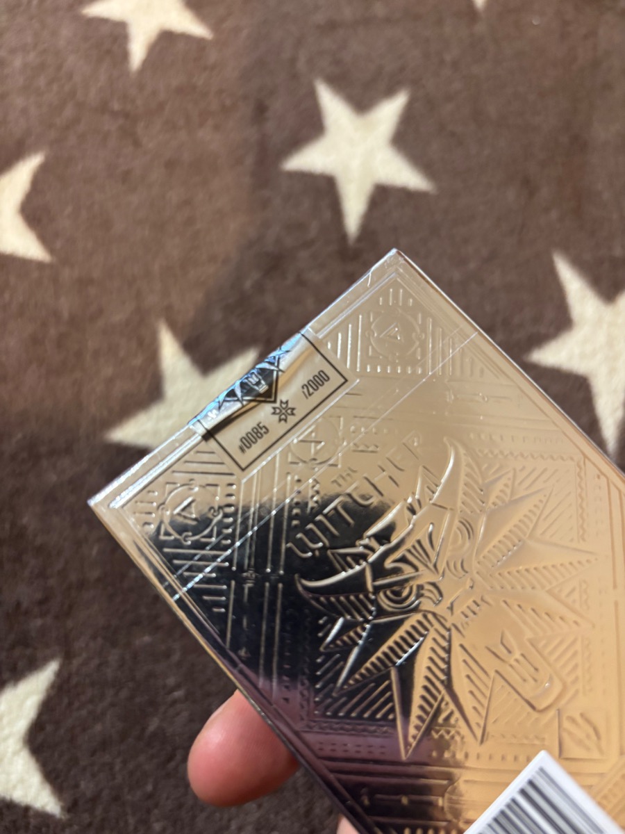 Wiedźmińskie Karty do Gry: Edycja Platynowa przyciągają wzrok i zatrzymują go na dłużej. To edycja limitowana — tylko 2000 sztuk na całym świecie — zaprojektowana z dbałością o każdy detal. Karty lśnią platynowymi akcentami, a ilustracje — pełne ruchu, światła i charakteru — ożywiają najważniejsze postacie sagi. Geralt, Ciri, Yennefer, Dziki Gon — każda z nich uchwycony w dynamicznej, pełnej wyrazu scenie. Wysmakowana oprawa graficzna przedstawia ulubione postacie z uniwersum Wiedźmina w pełnej krasie, w tym: